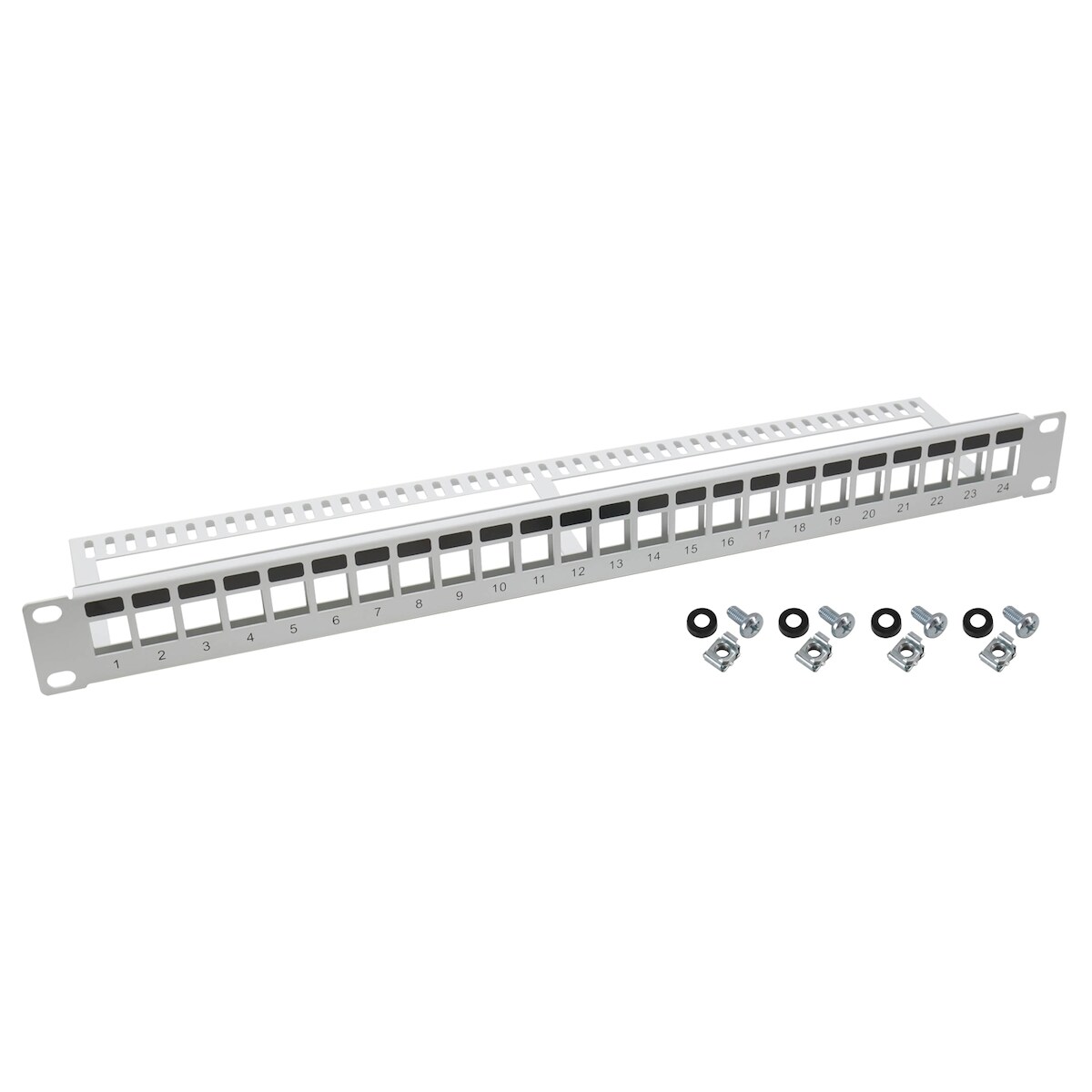 UTP Keystone-Patchpanel für Serverschrank, HMF 66445, 24 Ports RJ45, 19 Zoll, Lichtgrau