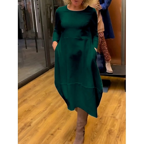 Per donna Abito maxi Tubino Casual Quotidiano Uscire Vestibilità regolare Semplice Manica Lunga Girocollo Rosa chiaro Champagne Vino Marrone Autunno Inverno