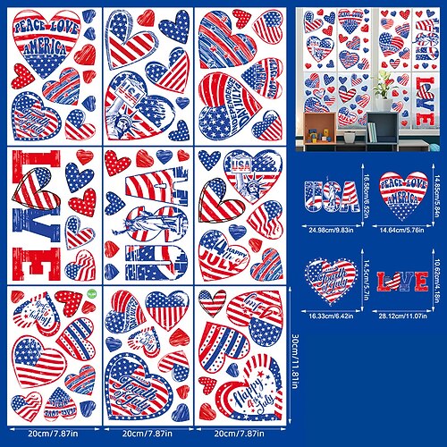9 fogli di adesivi per il giorno dell'indipendenza, per celebrare la festa nazionale negli Stati Uniti, adesivi statici con aquile, decorazioni per vetrine di centri commerciali, adesivi per vetrine