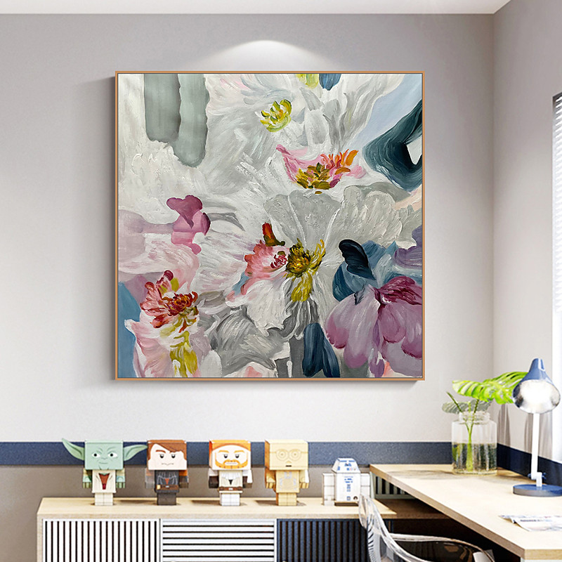 Hand Painted Pink Flower Oil Painting Style Canvas Wall Art Wall Hanging Living Room Decor Modern Design Floral Art