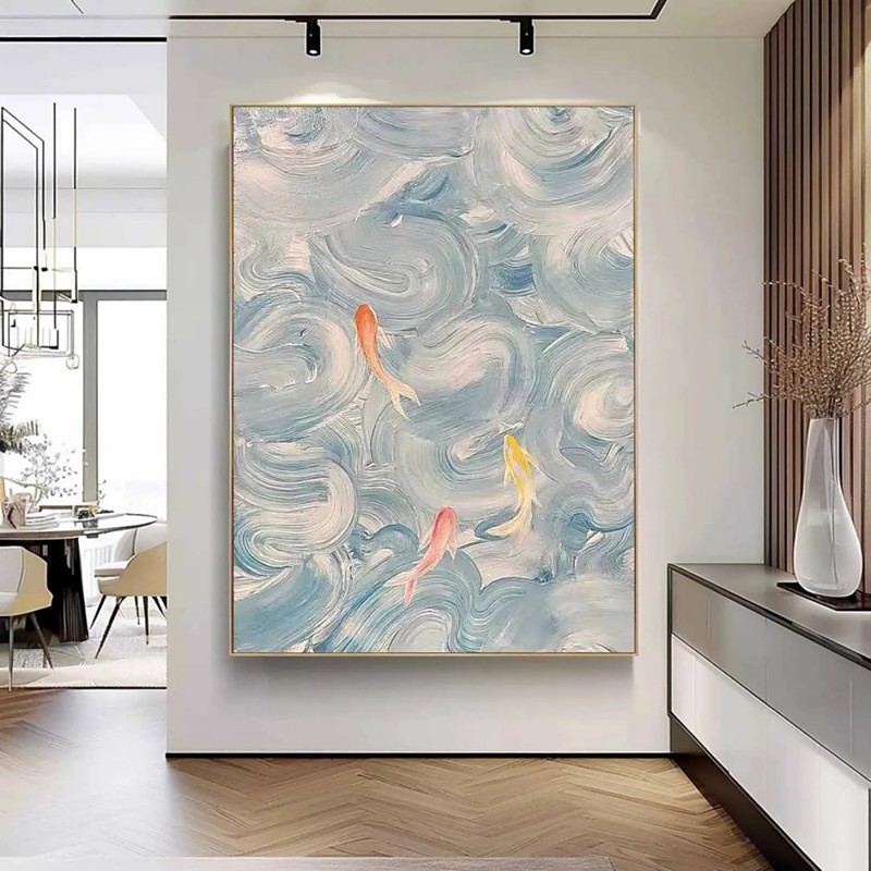 Handmade Oil Painting Canvas Wall Art Decoration Animal Abstract Texture Painting Fish Living Room Entrance Hall Decoration Home Decor Rolled Frameless Unstretched Painting