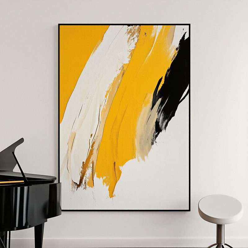Large hand painted Abstract Yellow White Black Canvas Art Handmade Acrylic Oil Painting for Modern Living Room Decor Contemporary Wall Mural painting wall art picture