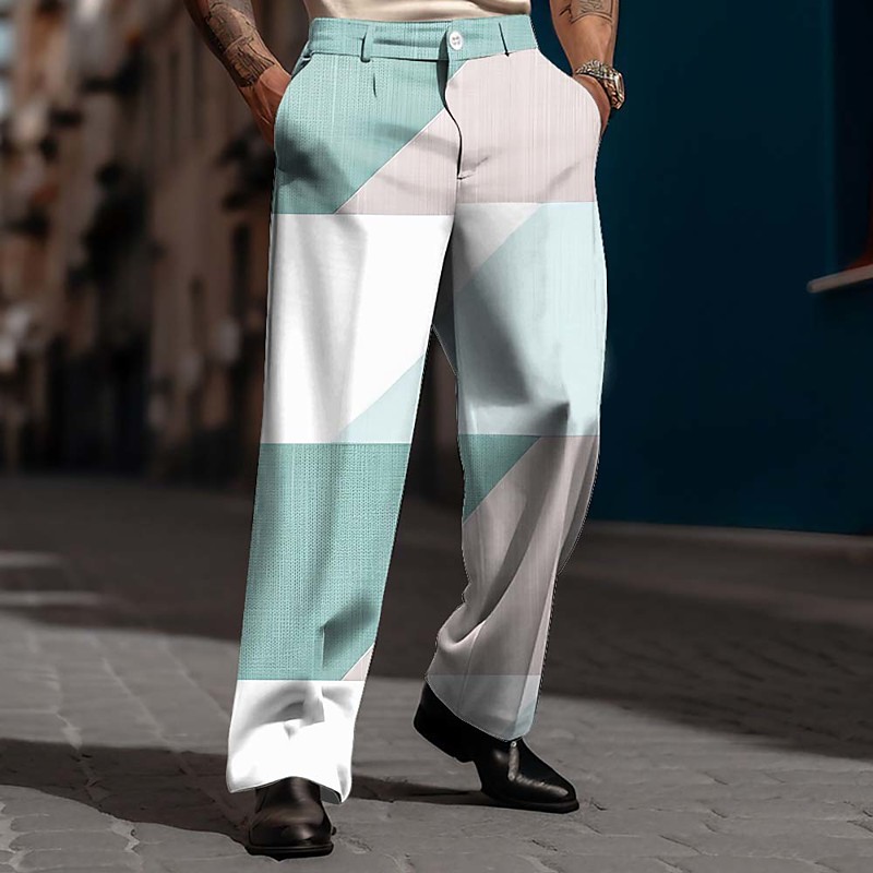 Men's Geometric Color Block Patchwork Trousers Dress Pants Suit Pants Mid Waist Business Casual Outdoor Dailywear Relaxed Fit Flat Front Dress Pants with Side Pockets Spring Fall 3D Print Blue Purple