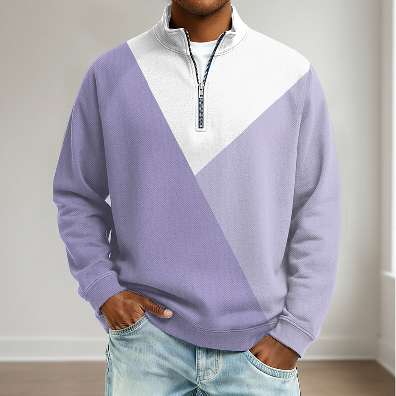 Men's Color Block Zip Polo Shirts Long Sleeve Polo Shirts Grandad Collar Casual School Athleisure Holiday Daily Wear 3D Print Quarter Zip Polo Spring Fall Winter Blue Purple Brown