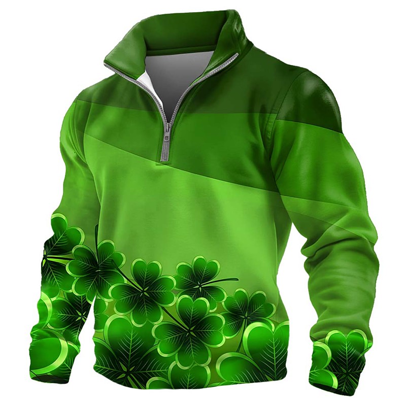 St. Patrick's Day Men's Shamrock Ireland Sweatshirt Sports Fashion Casual High Neck Zip Home Streetwear Work Party Green 2# Green 3# White Green Fall All Seasons Designer S M L XL XXL XXXL
