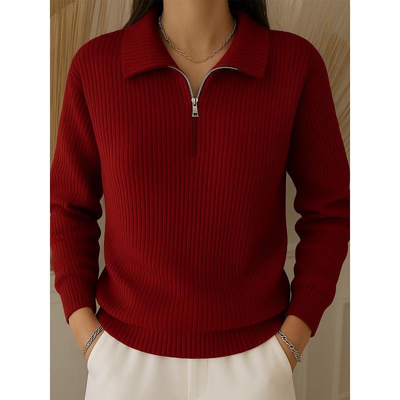 Women's Sweater Daily Half Zip Zipper Long Sleeve Regular Tops Knit Daily Weekend Wine Red Black Spring Fall