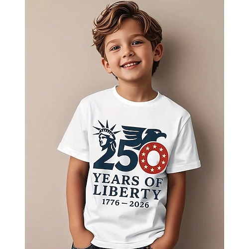 100% Cotone Bambini Ragazzi Nero Bianco Grafico Statua della Libertà 250° anniversario Maglietta Blusa Girocollo Manica Corta All'aperto Abbigliamento Quotidiano Moda Streetwear Designer Stampa Estate