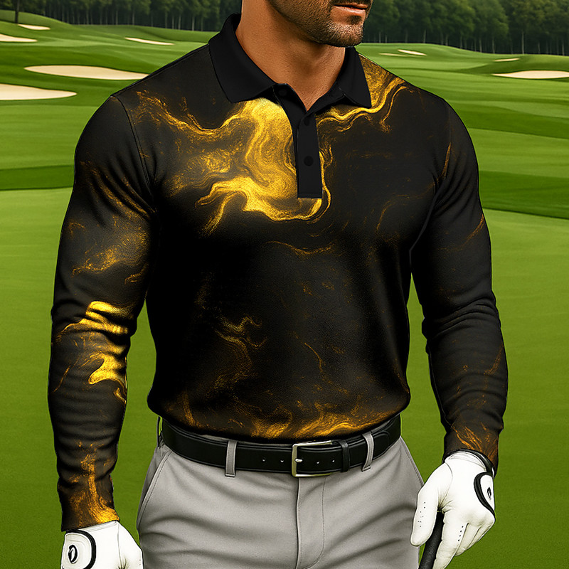 Men's Graphic Polo Shirts Golf Shirt Long Sleeve Polo Shirts Collared Shirts Casual Vacation Wear Rave Wear Party Outfits 3D Print Buttons Black-White BlackBlack Black