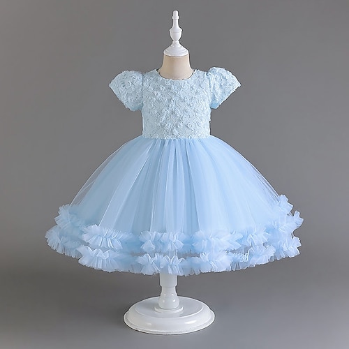 Abito da damigella d'onore bambina Ragazze Abito formale Abiti da sposa Feste Matrimonio Formale Moda Principessa Bello Rete Tinta unica Senza Maniche Girocollo Blu Giallo Dai 4 anni in su