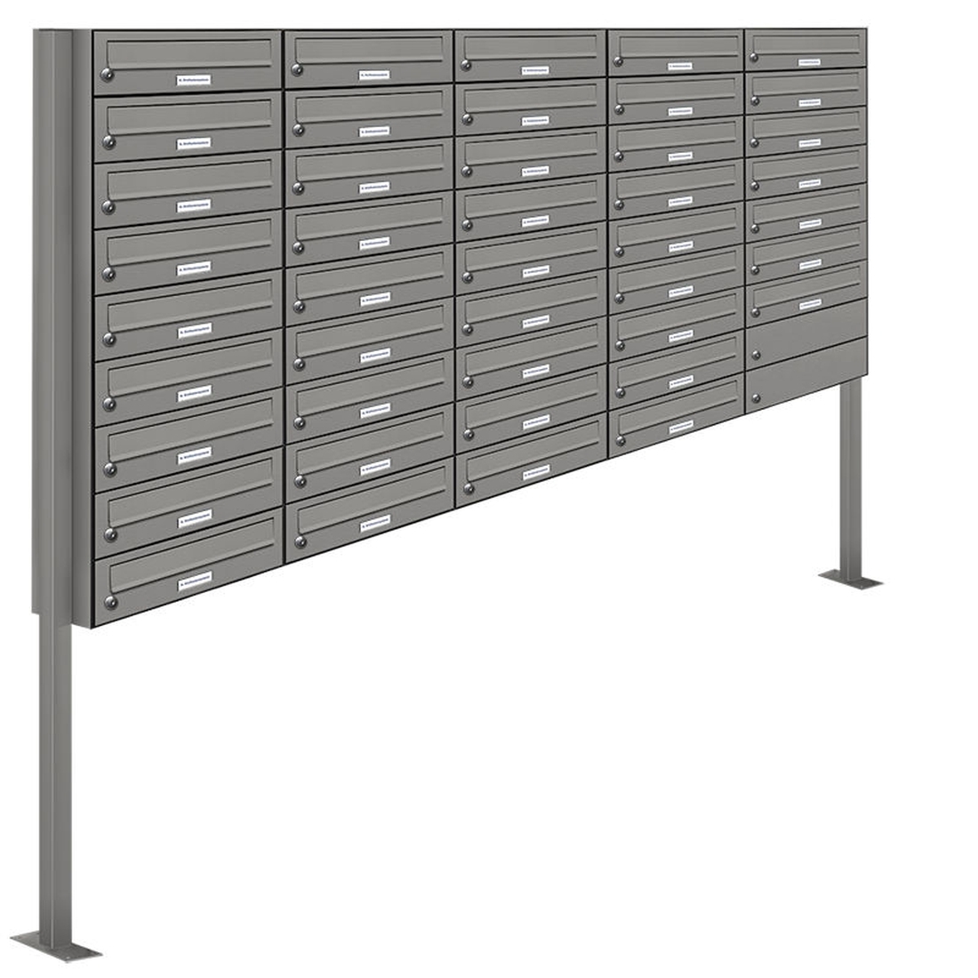 AL Briefkastensysteme 43 Fächer Premium Stand Briefkasten Anlage in RAL 9007 Aluminium Grau, Post A4, robust, wetterfest, Artikelnummer: 132P43S5P9007