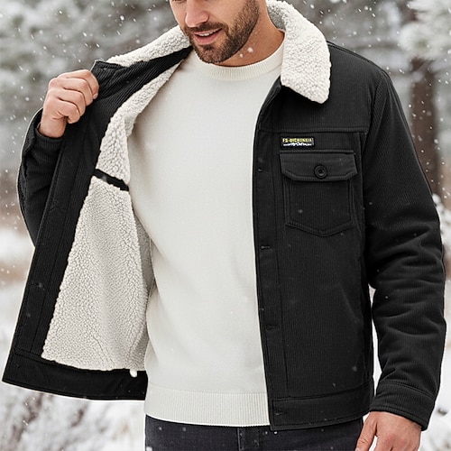 Per uomo Giacca in Velluto a Coste Giacca in Pile Giacca Cargo Giacca da Lavoro Formale Casa Giacca a Vento Durevole Tasca Colletto in pile Autunno Inverno Tinta unica Attivo Vintage Colletto Regolare