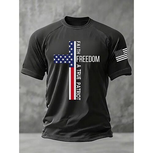 Per uomo Croce Bandiera Americana Camicia a Maniche Corte Maglietta Manica Corta maglietta Stampa 3D Girocollo Camicia Moda Designer Casual Vacanza Quotidiano Ferie Nero Bianco Blu marino Tutte le
