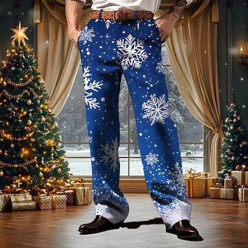 Natale Per uomo Fiocco di neve Pantaloni Eleganti Misura del girovita medio Casual All'aperto Casa Feste Cerniera Tasca Pantaloni a gamba dritta Estate Primavera Autunno Stampa 3D Nero Rosso Blu