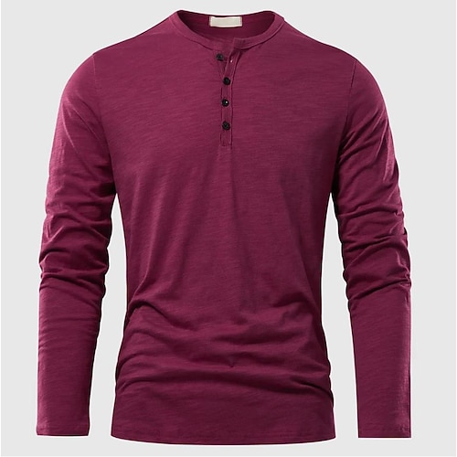 Per uomo Camicia in cotone e lino Maglia Henley Maglietta Top Henley Manica Lunga Tinta unica Semplice Tinta unita Moda Designer Casual Blocco di colore Bottoni Henley All'aperto Casuale Quotidiano