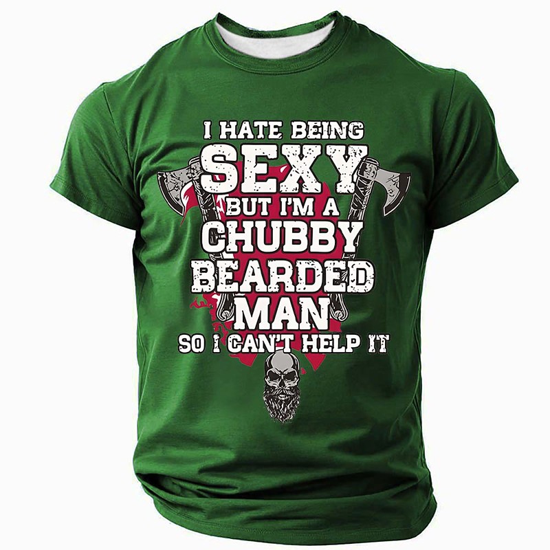 Mens Funny T Shirt I Hate Being Sexy But Im A Chubby Bearded Man So I Cant Help It Sarcastic Humor Graphic Tees Skull Axes Print Novelty Gift For Dad Husband Clothing Apparel S M L XL XXL XXXL