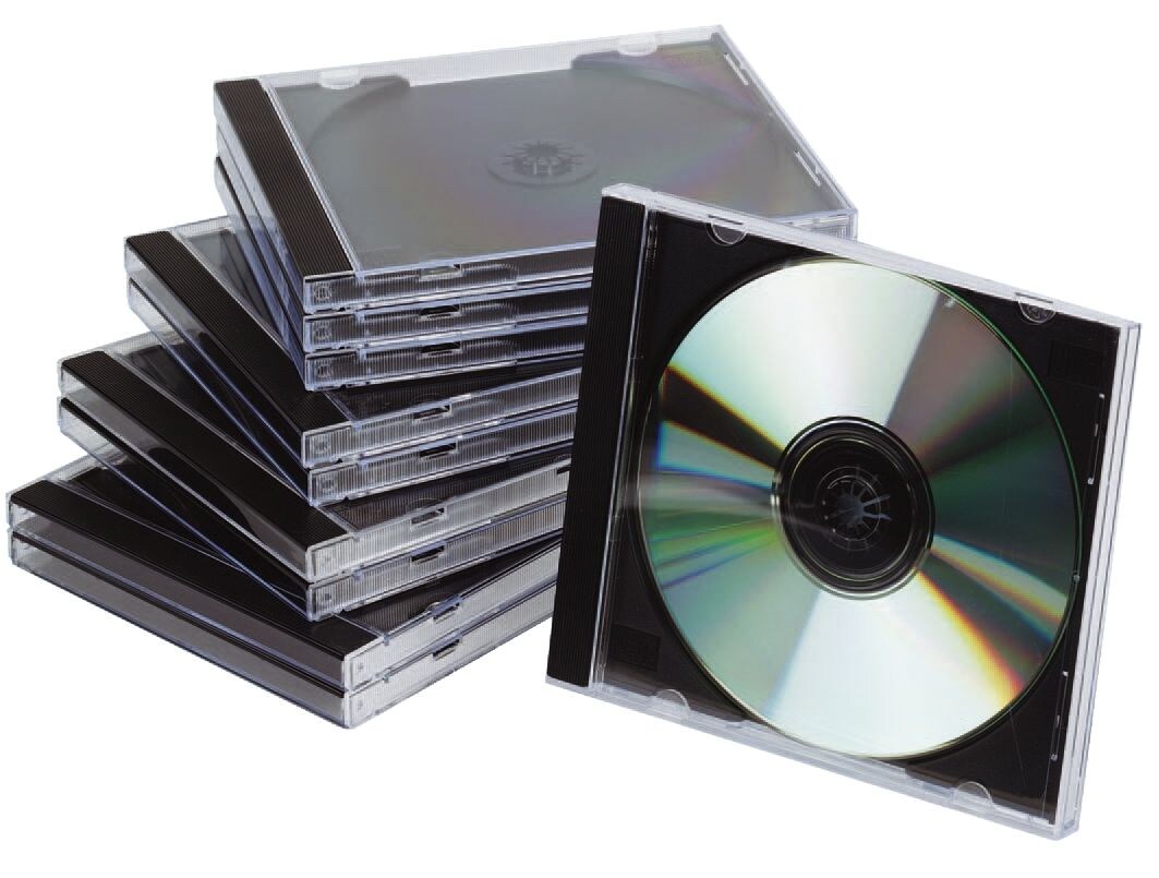 Q-Connect® KF02209 CD-Boxen Standard - Hardbox für 1 CD/DVD, transparent/schwarz, Packung mit 10 Stück