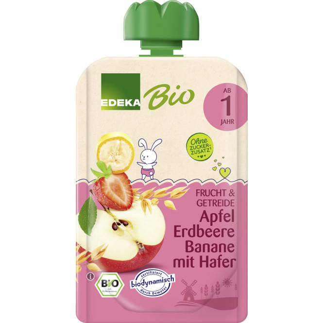 EDEKA Bio Apfel, Erdbeere & Banane mit Hafer ab 1.Jahr 100G