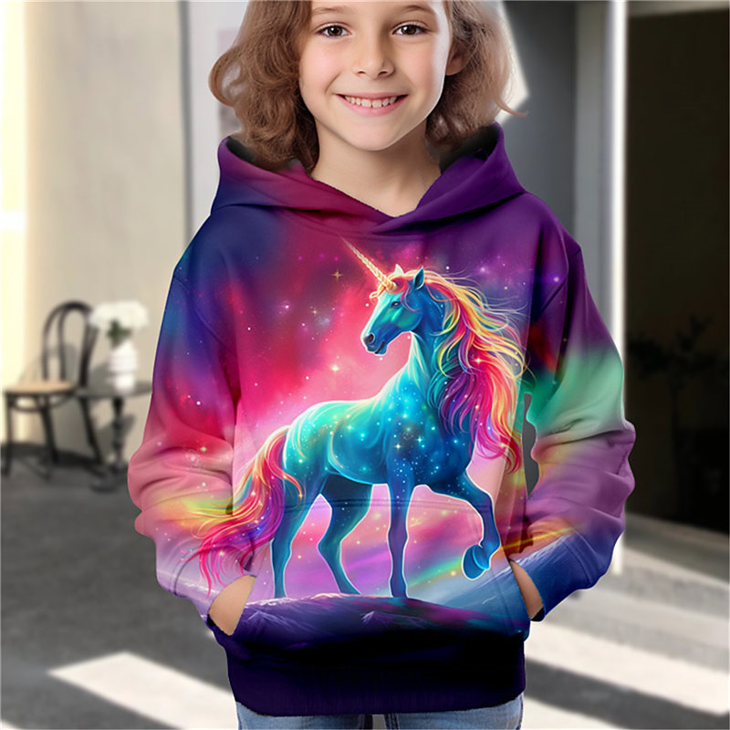 Girls' 3D Galaxy Unicorn Hoodie Pullover Long Sleeve 3D Print Fall Winter Active Fashion Cute Kids 3-12 Years Outdoor Casual Daily Regular Fit