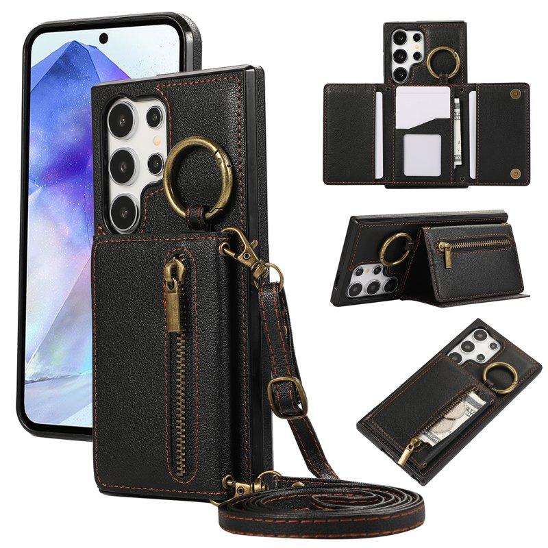 Handy Hülle Handyhüllen Für Samsung Galaxy S26 S26 Plus S26 Ultra Rückseite Mit Ständer Ringhalter Ringverschluss Retro TPU PU-Leder