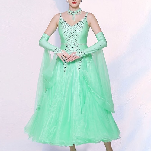 Balli da sala Abito Con diamantini Nappa Paillettes Per donna Prestazioni Feste Senza maniche Chiffon Chinlon Retato