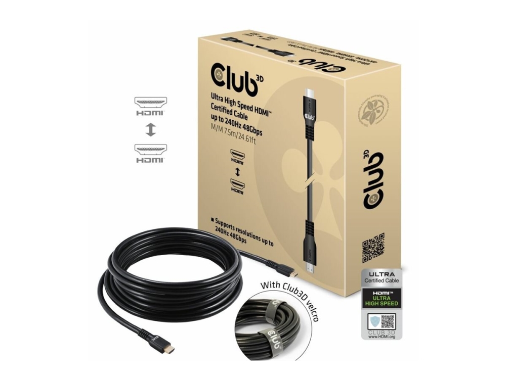 Club 3D - Ultra High Speed - HDMI-kaapeli - HDMI han til HDMI han - 7,5 m - 4K240 Hz (3840 x 2160) tuki (DSC), op til 48 Gbps datatransferhastighed (tiedonsiirtonopeus)