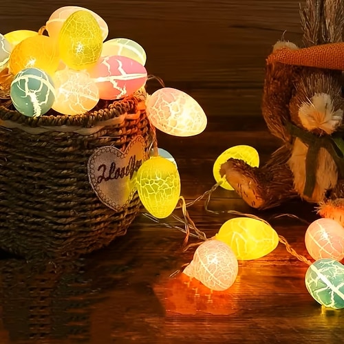 Luci a forma di uovo rotto colorato di Pasqua, luci a forma di favola, 1,5 m, 10 LED, alimentate a batteria, per la decorazione di stanze, case, feste di Pasqua, verande, balconi, giardini