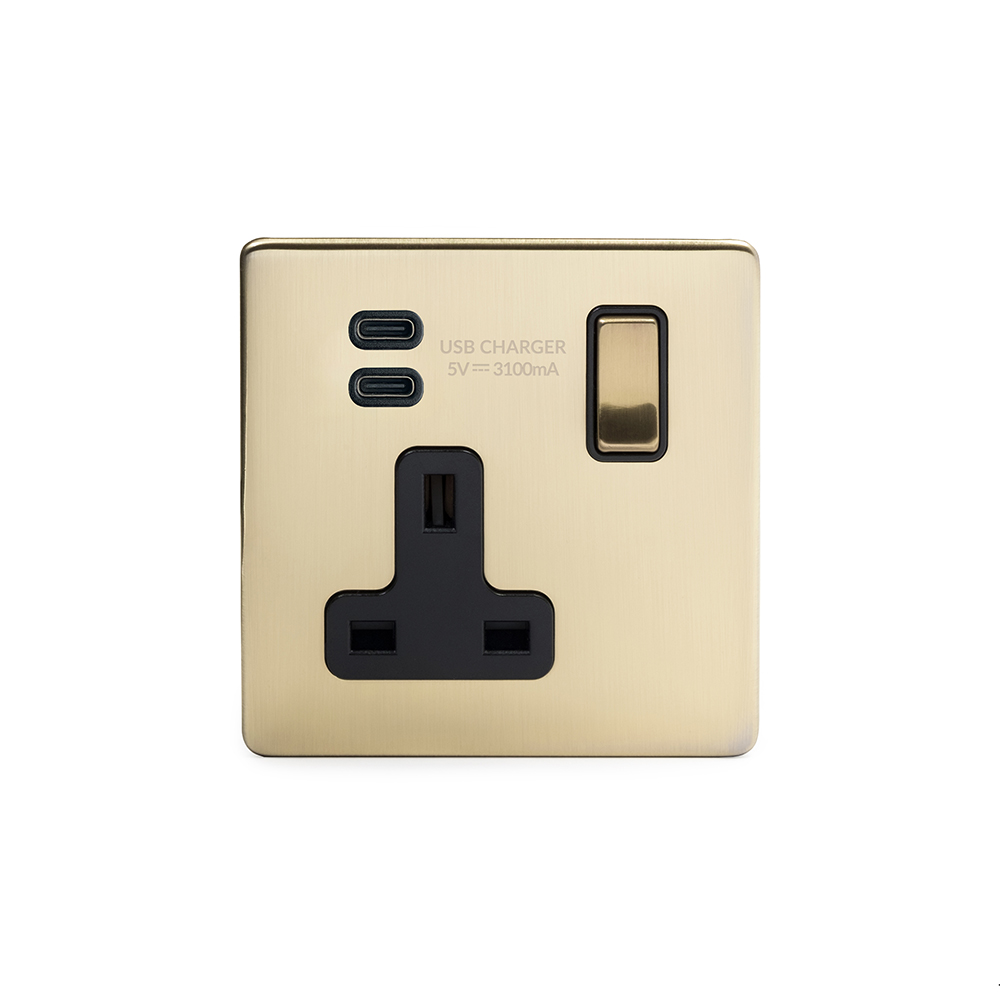 Soho Lighting Vintage Brass 2 Gang USB A+C Socket (13A Socket + 2 USB Ports A+C 3.1A)