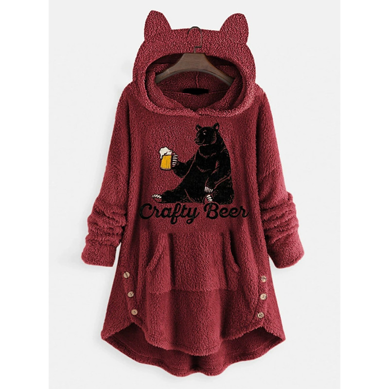 Women's Pullover Hoodie Sweatshirt Animal Letter Casual Long Sleeve Hooded Long Tops Street Dailywear Casual Pink Wine Gray Fall Winter