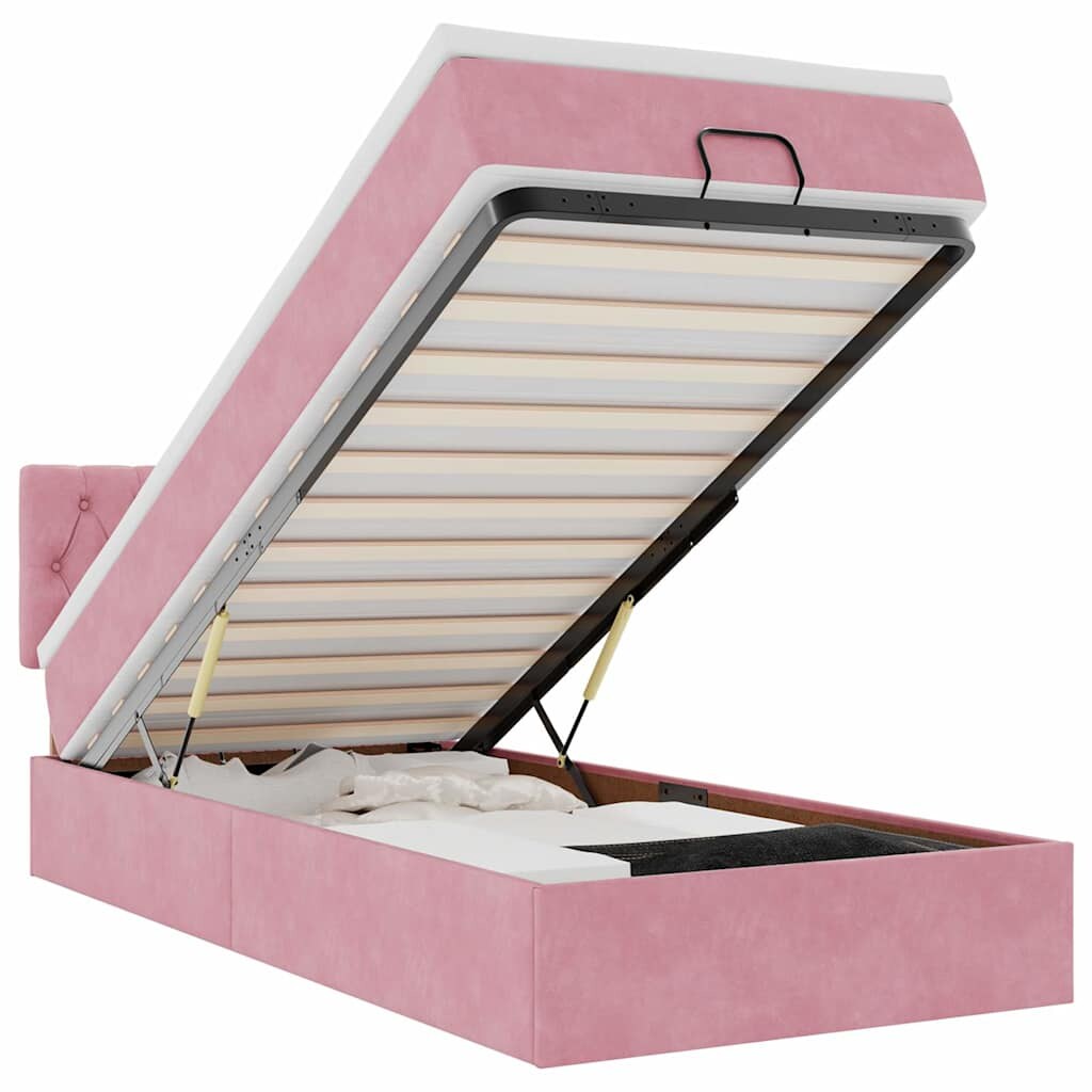 vidaXL Ottoman-Bett mit Matratze & LEDs Rosa 90x200 cm Samt