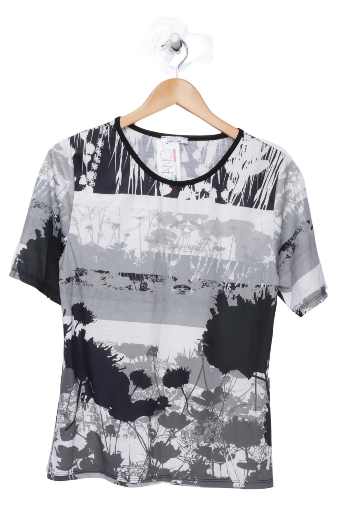 MILANO T-Shirt Damen Gr. 36 Grau Kurzarm Casual Look