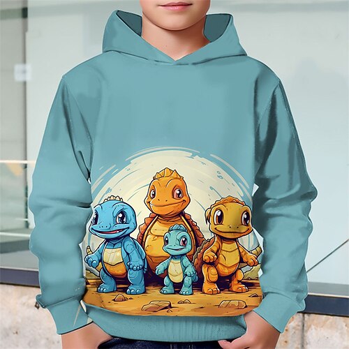 Jungen 3D Dinosaurier Kapuzensweatshirt Langarm Frühling Herbst Mode Streetwear Kinder 4-12 Jahre Mit Kapuze Outdoor Lässig Täglich Normale Passform