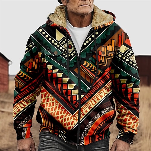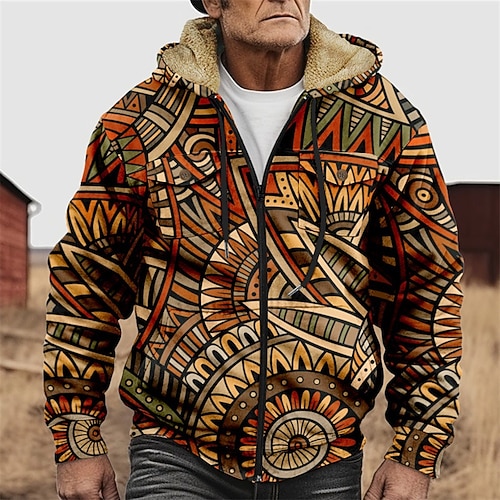 Per uomo Grafico Stile Boho Felpa con Cappuccio Giacca di pelle Moda Etnico Casual Manica Lunga Con Cappuccio All'aperto Sport all'Aperto Uscire Marrone chiaro Arancione scuro Giallo Blu Arancione