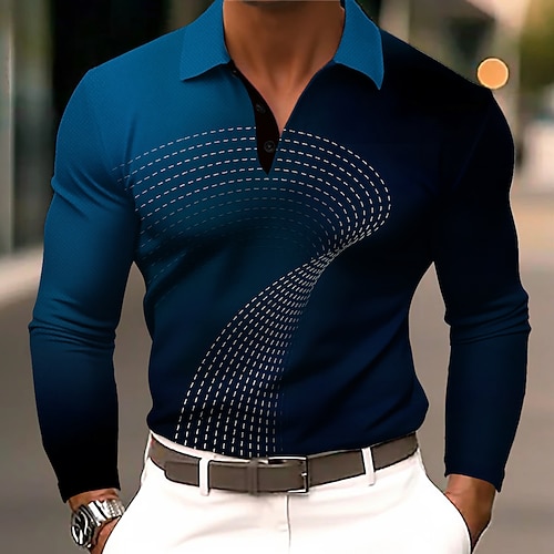 Herren Geometrisch Polo Langarm Polo-Shirts Revers Business-Casual Athleisure Alltagskleidung 3D-Druck Knöpfe Frühling Herbst Winter Rote Blau Orange