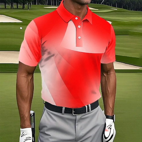 Herren Geometrisch Golf Sport-Poloshirts Kurzarm Polo-Shirts Revers Lässig Athleisure 3D-Druck Knöpfe Frühling Sommer Rote Blau Purpur