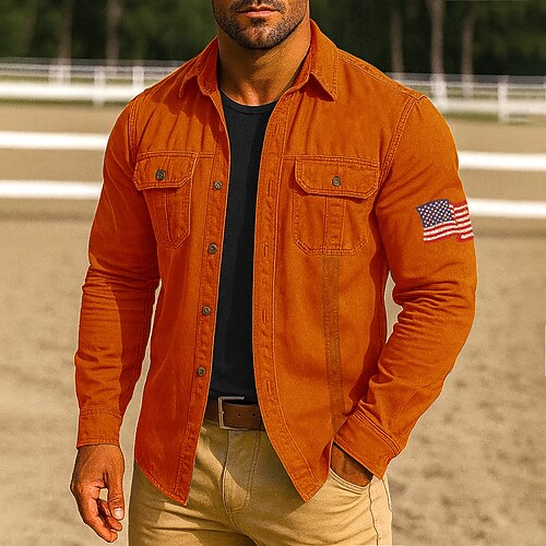 Per uomo Bandiera Americana Patriottico Camicia da lavoro Camicia Western Camicia cargo Manica Lunga Pantaloni Tattici Vintage Retrò Sport all'Aperto Abbigliamento da lavoro Primavera Autunno Collo
