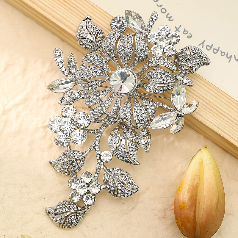 1 Piece/set Of Exquisite Shiny Colorful Crystal Rose Flower Brooch For Girls Evening Dress Pin For Ladies Wedding Fashion Accessories Christmas Gift