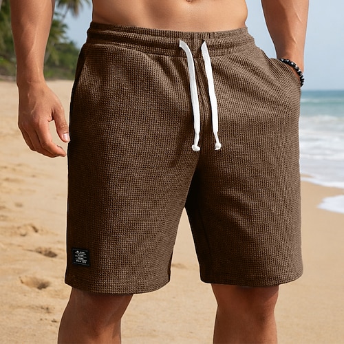 Per uomo Pantaloncini Waffle Shorts Pantaloncini casual Tasca Elastico in vita Testurizzato Semplice Comodità Traspirante Lunghezza al ginocchio Casuale All'aperto Spiaggia Vacanza Moda Nero Bianco
