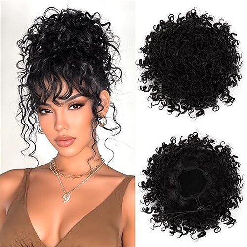 Chignon spettinato per donna, chignon afro riccio, elastico con coulisse, chignon ondulato morbido, extension per chignon sintetico da 80 g (nero naturale) 23 cm