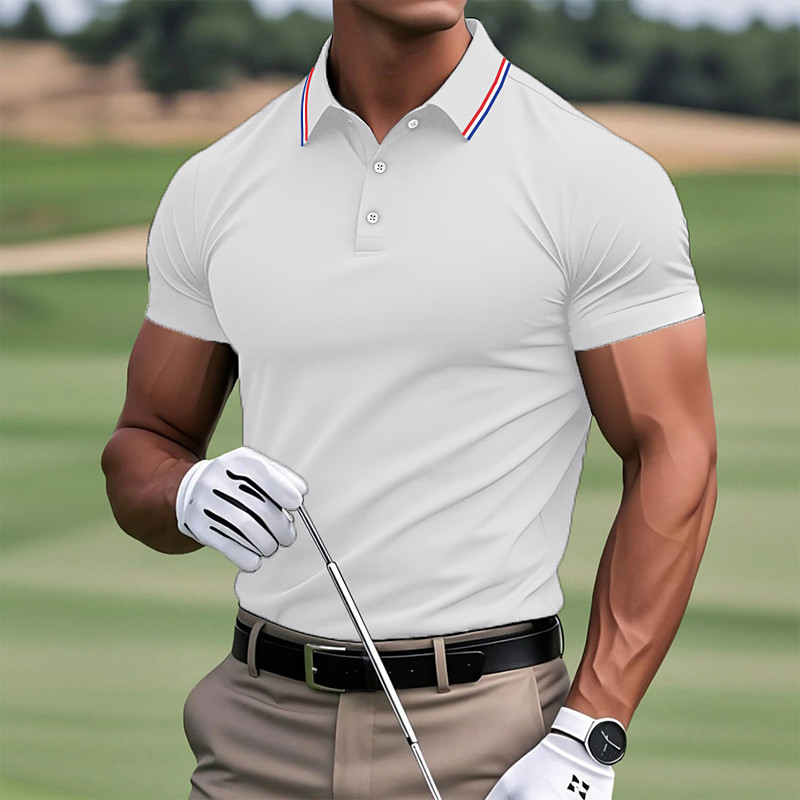 Men's Golf Shirt Pique Polo Shirt Business Casual Ribbed Polo Collar Short Sleeve Fashion Basic Solid Color Plain Buttons Summer Spring Fall Slim Fit Black Pink White Yellow Light Green Red Golf