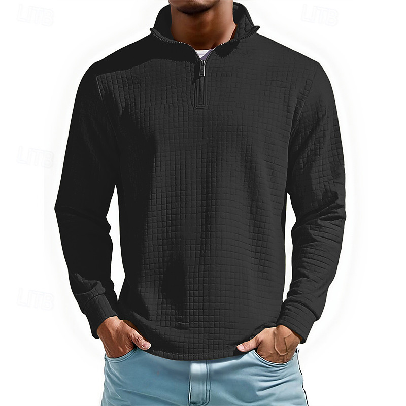 Men's Waffle Polo Shirts Polo Shirts Daily Wear Date Quarter Zip Long Sleeve Fashion Basic Plain Zipper Spring Fall Regular Fit Black White Wine Khaki Light Grey Army Green Waffle Polo Shirts