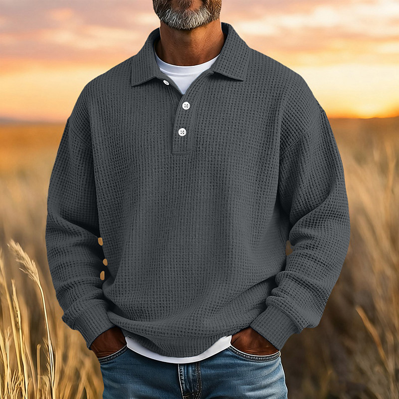 Men's Waffle Polo Shirts Golf Shirt Work Casual Lapel Long Sleeve Basic Modern Plain Buttons Spring Fall Regular Fit Blue Deep Green Wine Black White Light Green Waffle Polo Shirts