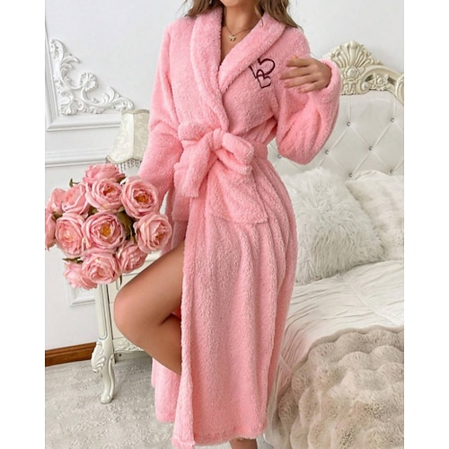 Per donna Pigiama Accappatoio Flanella Moda Casual Colore Puro Tasca Vacanza Casa Da letto Manica Lunga Bavero Rosa Viola Autunno Inverno Vestibilità su misura