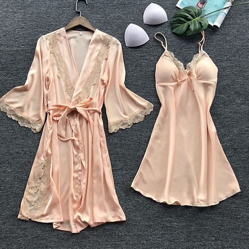 Per donna Pigiama Accappatoio Camicia da Notte Casual Morbido Raso Colore Puro Pizzo Patchwork Casa Da letto Mezza Manica Scollo a V Argento Giallo Rosa Vino Estate Vestibilità comoda