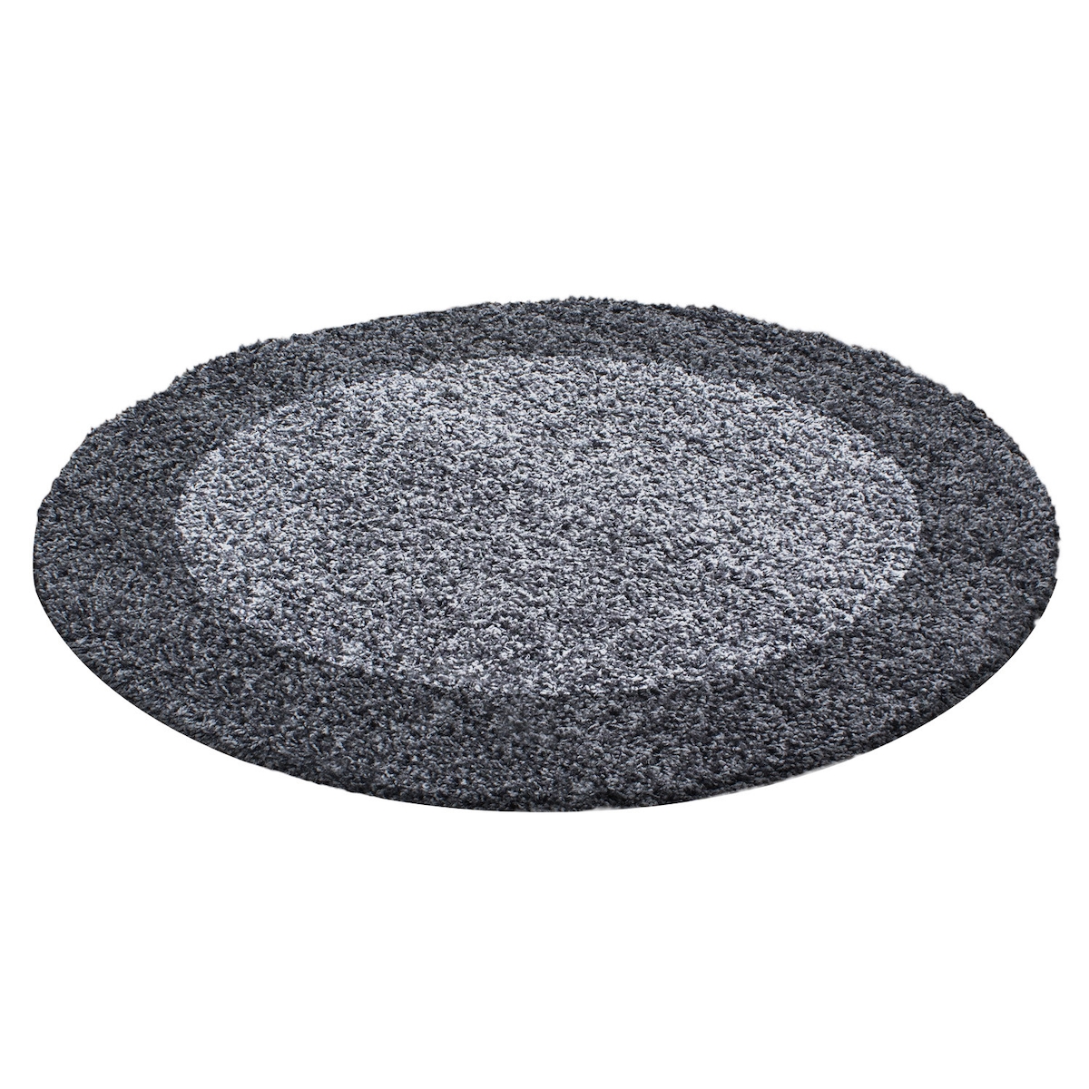 Teppich Schlafzimmer Hochflor Bordüre Samtweich Waschbar Strapazierfähig Wohnzimmer Rund Grau 160x160 cm – RHEIN von Kadima Design