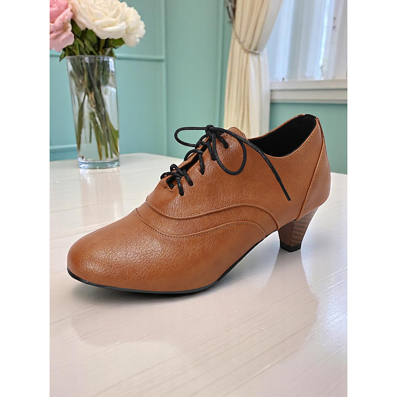 Women's 1950s Vintage Lace-Up Oxford Shoes – Retro Faux Leather Mid Heel Dress Shoes for Special Occasions and Classic Outfits