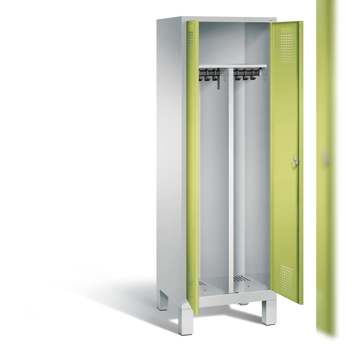 C+P Doppel-Spind Classic PLUS, Füßen, 4 Abteile, HxBxT 195x120x50cm, Sicherheitsdrehriegel, Hellgrau/Clowngrün von PROREGAL