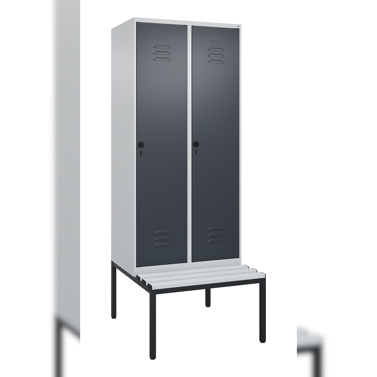 C+P Z-Spind Classic PLUS, schwebender Sitzbank aus Buche 2 Abteile, HxBxT 212x40x82cm, Zylinderschloss, Anthrazit von PROREGAL
