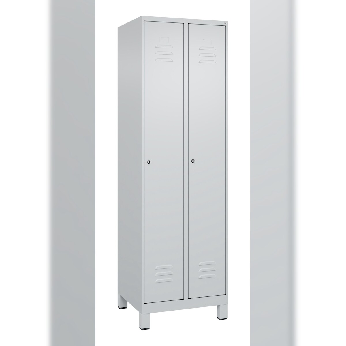 C+P Spind Classic PLUS, Füßen, 2 Abteile, HxBxT 195x60x50cm, Zylinderschloss, Hellgrau/Hellgrau von PROREGAL