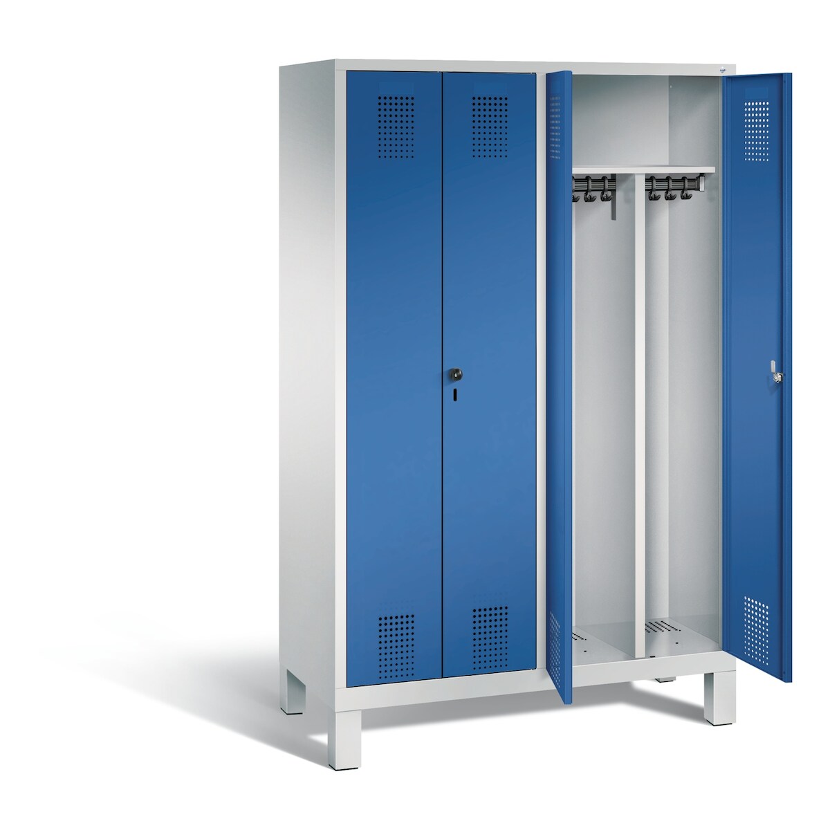 Spind Classic PLUS, 2 Abteile, lichtgrau / lichtblau, B 600 mm, mit Füßen, Drehriegel C+P
