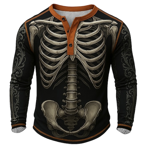 Herren Schädel Coole Schädel Shirt Henley Shirt Tee Langarm Vintage Mode Designer Spirit Party Frühling Herbst Alle Jahreszeiten Rot Grün Khaki Grau Henley Henley